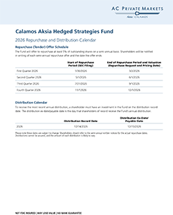 2025 capital gains distribution for Calamos Aksia interval funds were declared December 15, 2025. To view the report, click here.
